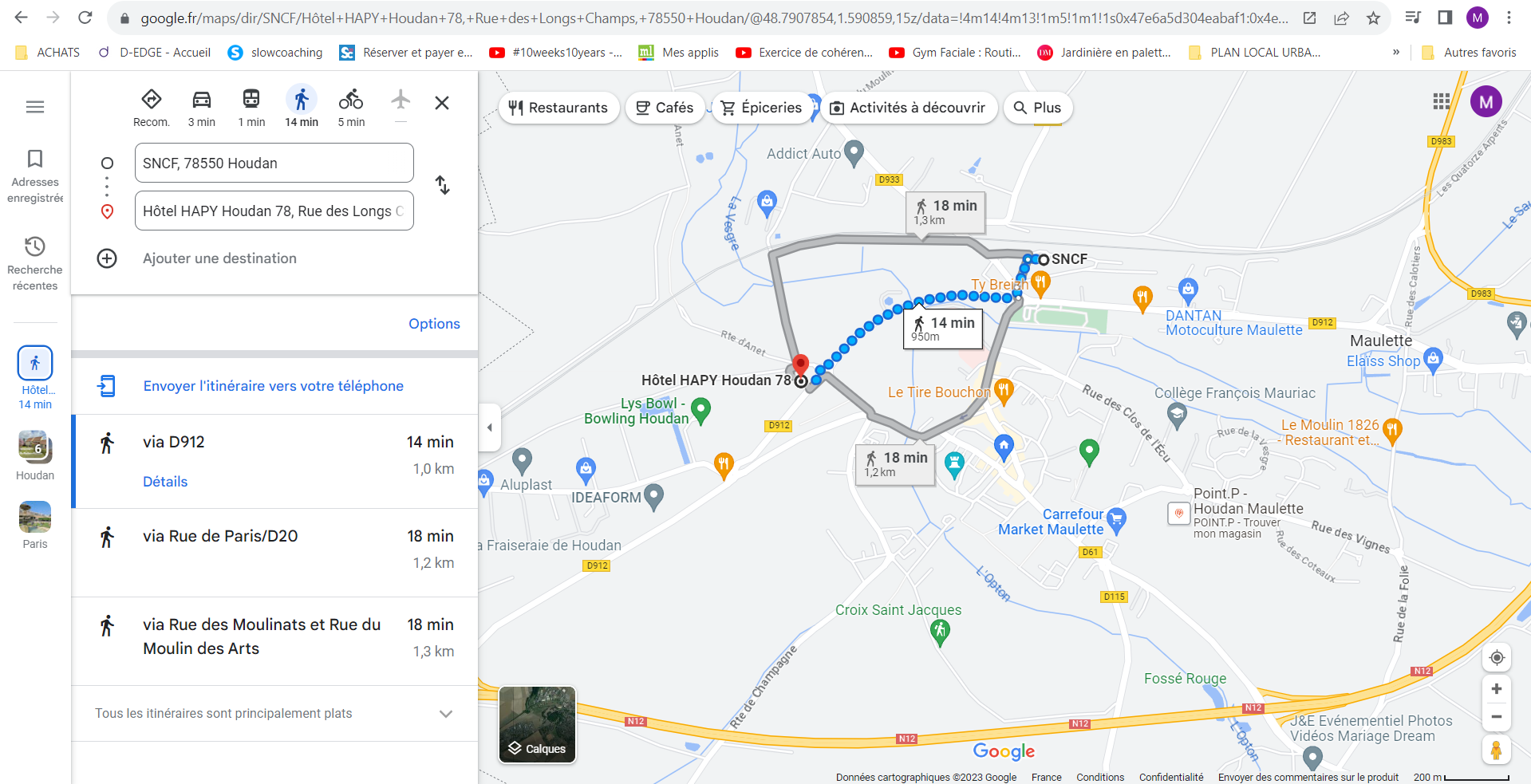 - En train : l'hôtel HAPY est situé à 15 minutes à pied de la Gare de Houdan, qui dessert la ligne Paris-Dreux - 5€ le trajet simple